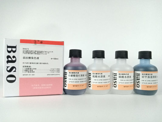 Zuurfast bacteriën zoals Mycobacterium tuberculosis en Mycobacterium leprae zijn moeilijk te kleuren vanwege hun lipoïde capsule in de celwand.Zodra de lipoïdecapsule is gekleurd met een verbeterde kleurstof zoals carbolfuxine, zal de nieuw gevormde verbinding bestand zijn tegen verkleuring door zuur-alcohol en de oorspronkelijke kleur (rood) behouden,die gemakkelijk te onderscheiden zijn van andere micro-organismen die nog steeds de tegenblauwe vlek adsorberenVanwege Nocardia en andere zwakke zuurvaste bacteriën is hun zuurresistentie zwak, de verkleuringskracht van de verkleuring kan niet te sterk zijn.het kan alleen verkleuren bij lage concentratie van zoutzuur of verdund zwavelzuurIn dit product wordt een lage concentratie zwavelzuur gebruikt als verkleuring.
