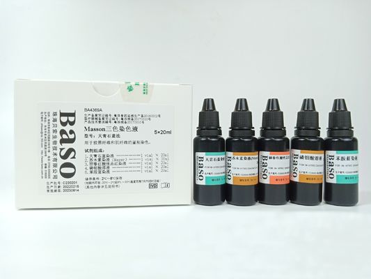 Diese Färblösung ist eine verbesserte Version von Mallorys Trichrom-Färbungsmethode.mit einem Verhältnis von zwei oder drei anionischen Farbstoffen, gleichzeitig oder nacheinander aufgetragen, um den Färbungsprozess abzuschließenDer Farbmechanismus hängt von der Molekülgröße der anionischen Farbstoffe und der Durchlässigkeit der Gewebe ab.Durch Auswahl anionischer Farbstoffe unterschiedlicher Molekülgrößen auf der Grundlage der unterschiedlichen Durchlässigkeit von Geweben, können verschiedene Gewebebestandteile deutlich dargestellt werden.