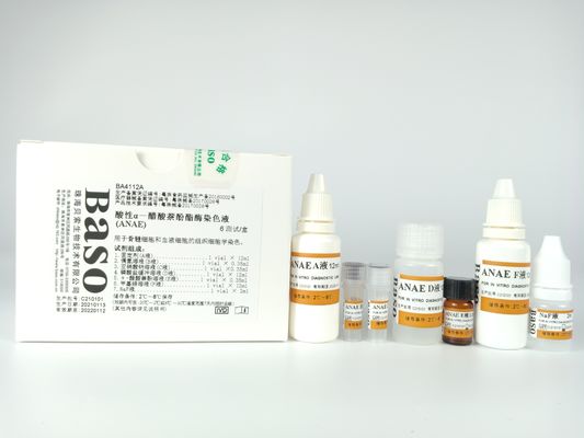 निर्देश: 50μl समाधान B और समाधान C को एक टेस्ट ट्यूब में मिलाएं; अच्छी तरह मिलाएं और प्रतीक्षा करें1 मिनट के लिए। फिर, 1.5 मिलीलीटर समाधान D और 50μl समाधान E जोड़ें; अच्छी तरह से मिलाएं और प्रतीक्षा करें2 मिनट के लिए (नाफ अवरोधक परीक्षण के लिए समाधान NaF की 1 बूंद जोड़ें) ।