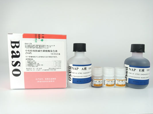 중성세포-백혈구 알칼리 엽산화 염색은 디아조화 결합 원리에 기초합니다. pH 9.2 ~ 9.8, 알칼리 인 인산화제는 나프톨 AS-BI 인산산을 α-나프톨로 수분화합니다. 안정적인 디아조늄 소금과 나프톨은 세포질에서 용해되지 않는 색상의 침착물을 형성합니다.
