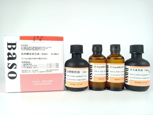 O ácido periódico é um oxidante que pode destruir a ligação de carbono da poliose.Os tecidos são oxidados em solução de ácido periódico para quebrar a ligação de carbono do grupo glicol ou hidróxido de amônia na poliose de tecidoEm seguida, o aldeído livre exposto irá reagir com a Fuchsin incolor para formar um novo composto red- fuchsia.